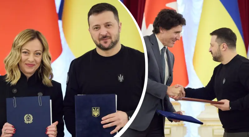 "Сегодня (24 февраля – ред.) с Италией и Канадой мы заключили двусторонние соглашения по безопасности. То есть в день второй годовщины полномасштабного вторжения России в Украину мы в очередной раз доказываем, что, несмотря на все сложности и вызовы, страна будет становиться только сильнее и будет всегда вместе со своими партнерами в свободном мире", - подчеркнул Зеленский.