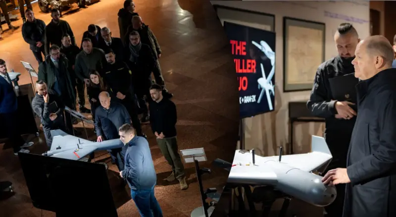 Во время визита в Киев канцлера Германии Олафа Шольца на официальных фото появился украинский дрон, похожий на Shahed-136. Об этом говорится в материале Defense Express. Об этом говорится в материале Defense Express.