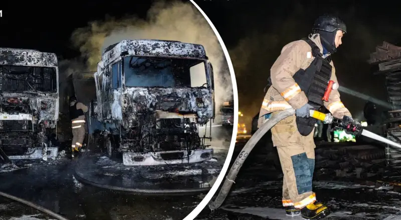 В результате удара загорелся одноэтажный частный дом, грузовые и легковые автомобили на территории предприятия. Пожарные оперативно потушили огонь.