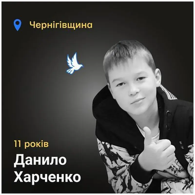 «Даниил был жизнерадостным, любил мастерить, рисовать, заниматься спортом», - вспоминает дедушка 11-летнего Даниила Харченко из Черниговской области. До начала полномасштабной российской агрессии мальчик учился в 5-м классе. В марте прошлого года они вместе с мамой и 14-летним братом Богданом попытались на машине спастись от озверевших окупантов. На трассе Чернигов-Киев автомобиль взорвался на российской мини: дети сгорели, их маму взрывной волной выбросило из машины, и она погибла.