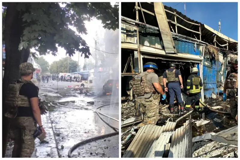 Президент Владимир Зеленский опубликовал видео удара россиян по городу, а также подтвердил, что враг атаковал рынок и убил 16 человек.