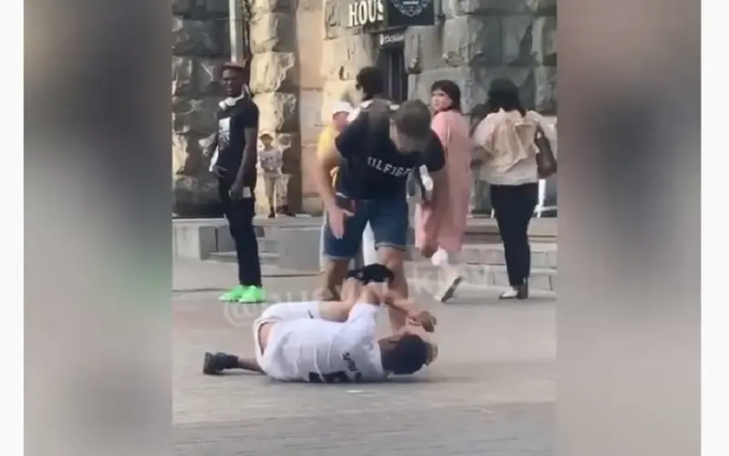 Инцидент произошел на Крещатике, при этом эксгибициониста повалили на землю и наносили ему удары руками и ногами. Видео избиения неадеквата опубликовал в Сети пользователь Игорь Тимофеев.
