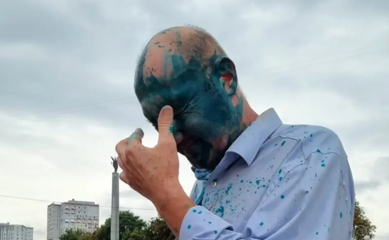 В Черкассах активисты облили зеленкой бывшего депутата горсовета от запрещенной партии ОПЗЖ Александра Замирайло, который вышел из СИЗО под залог в 208 тысяч гривен, куда попал в связи с подозрением в поддержке страны-агрессора.