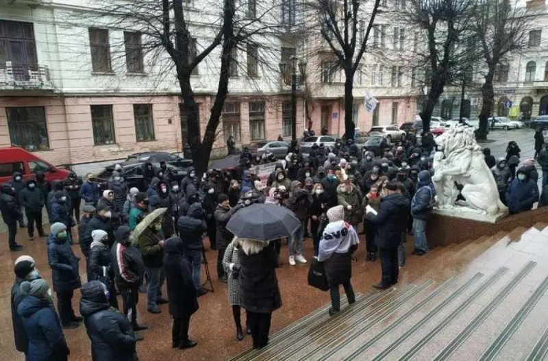 У Чернівцях біля будівлі обласної адміністрації на акцію проти карантину зібралися підприємці. Люди, зокрема, підготували звернення до губернатора Сергія Осадчука та голови Чернівецької обласної ради Олексія Бойка, в якому вимагають дотримання їх конституційного права на працю.