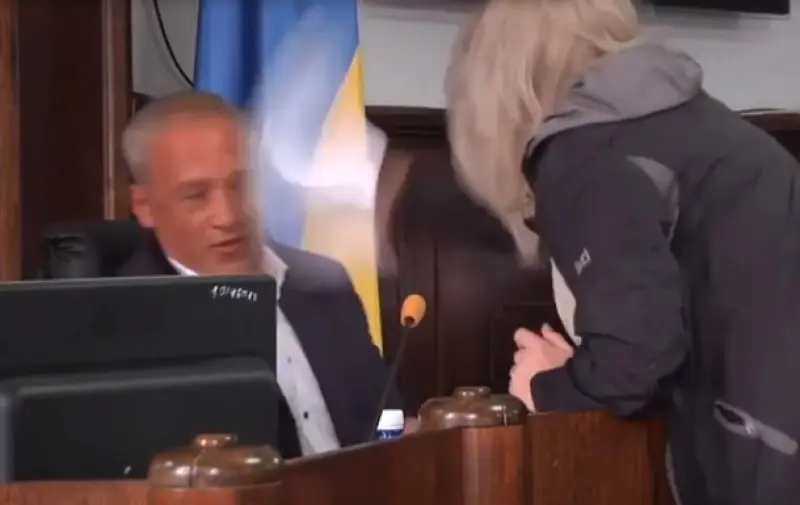 Сегодня, 2 сентября, в Черновцах во время сессии горсовета в зал ворвалась неадекватная женщина, которая подбежала к президиуму и пыталась ударить мэра Романа Кличука, сообщает УНИАН.