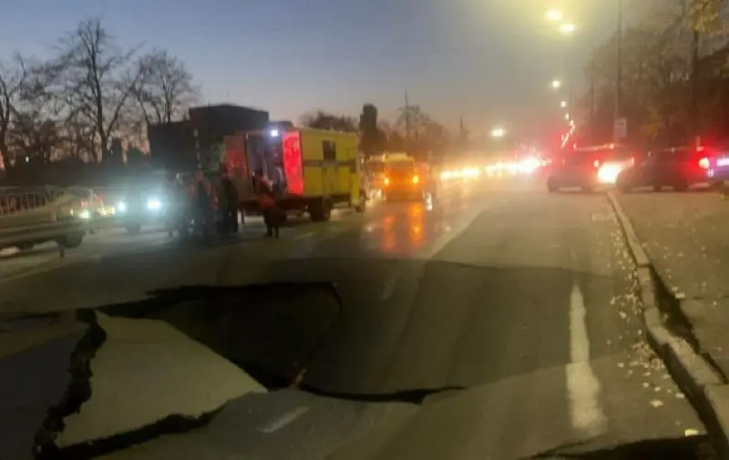 Сегодня на левом берегу Киева прям на дороге провалился асфальт - из-за этого было перекрыто движение транспорта от бульвара Перова в направлении улицы Радужная.