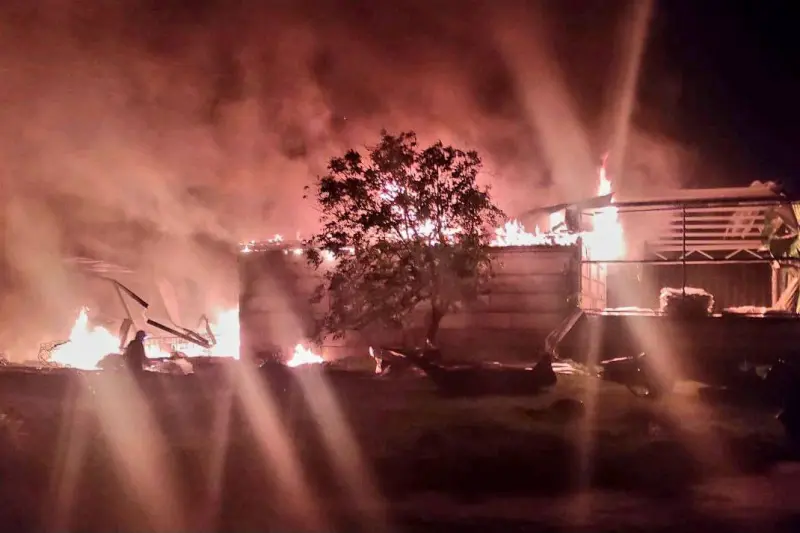 Уничтожены несколько складских помещений, изуродовано оборудование и машины.