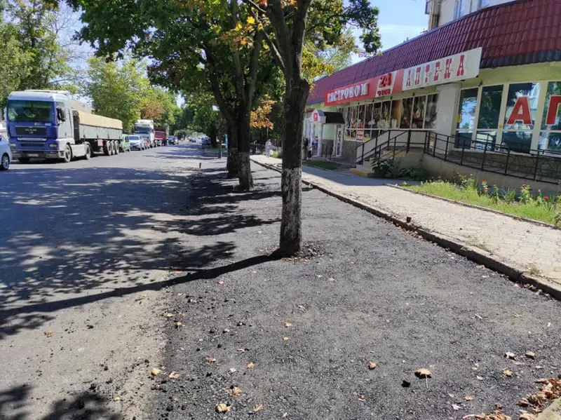 Фото опубликовал в Facebook пользователь Федор Левченко. По его словам, после гневных комментариев в соцсетях дорожники отгребли немного асфальта от деревьев.