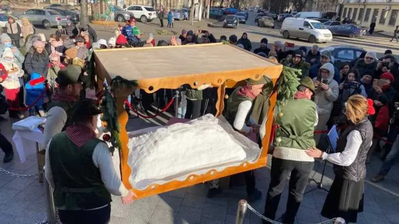 В Одессе испекли гигантский рождественский кекс, который состоит из 70 частей и весит 92 килограмма.