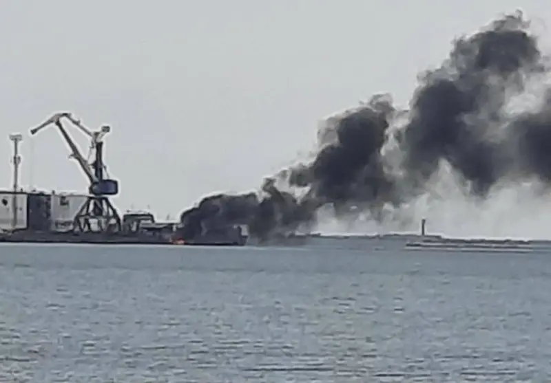 Отмечается, что взрыв произошел на территории местного порта. В небе над городом поднялся густой черный дым.