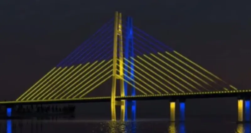 «Флагман Национальной программы восстановления мостов оборудуем патриотическим LED–освещением. Лампы на вантах, пилонах и других элементах искусственного сооружения ночью будут светиться синим и желтым цветом», - рассказали в госучреждении.