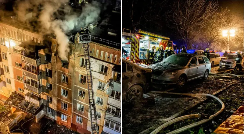 Как сообщил Мэр Тернополя Сергей Надал, после попадания вражеского БПЛА в многоквартирный дом пожар охватил квартиры на пятом и частично на третьем и четвертом этажах.