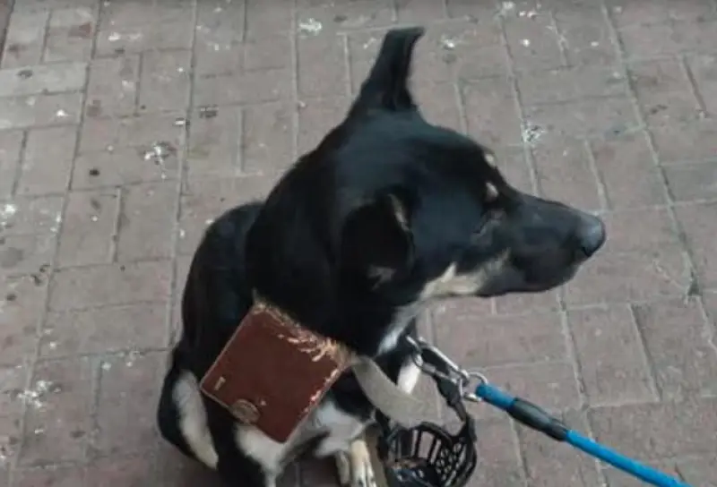 В Запорожье неизвестные бросили собаку у входа в торговый центр, привязав к ней кошелек и записку. Как сообщила в соцсетях местная зоозащитница Ирина Дидур, также на шее у собаки висел намордник.