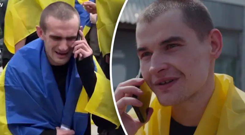 Госпогранслужба в Telegram опубликовала видео с первыми кадрами после обмена. На них один из Героев стоя на коленях, с украинским флагом на плечах на слезами на глазах звонит родным.