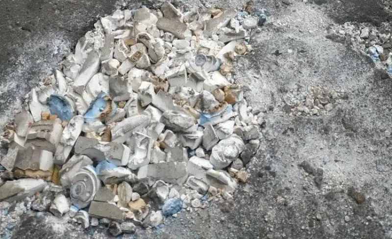На Луганщине нашли необычный способ для решения злободневных проблем с ямами на дорогах. В Северодонецке выбоину засыпали слепками челюстей, устав ждать "милостей" от дорожников.