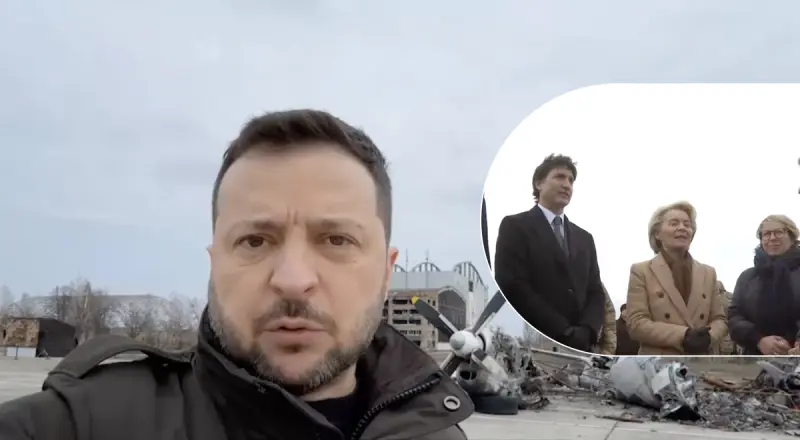 Вместе с главой государства в Гостомель прибыли президент Еврокомиссии Урсула фон дер Ляйен, а также главы правительств Бельгии, Италии и Канады - Александр Де Кроо, Джорджия Мэлони и Джастин Трюдо.