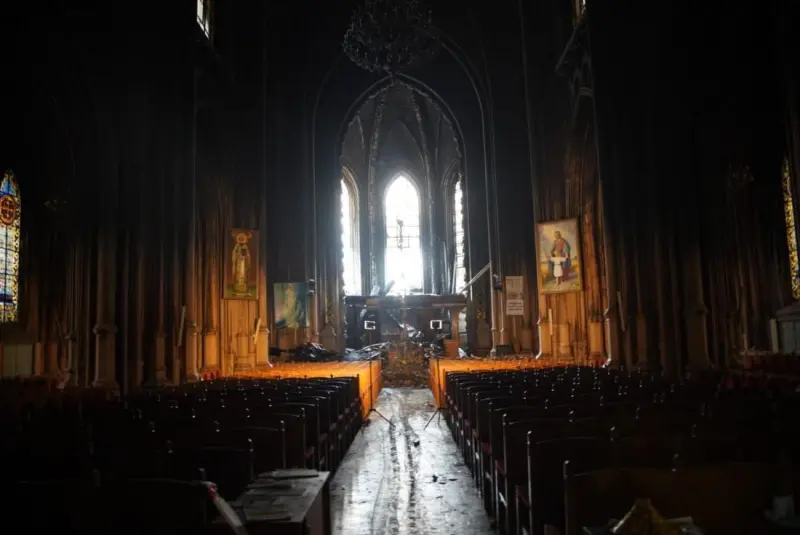 "Среди потерь - только концертный орган, который сгорел дотла, и одна люстра, которая упала на лестнице пресвитерия. Именно орган стал эпицентром пожара (короткое замыкание во время репетиции). Пожар на нем и остановился", - написал он в Facebook.
