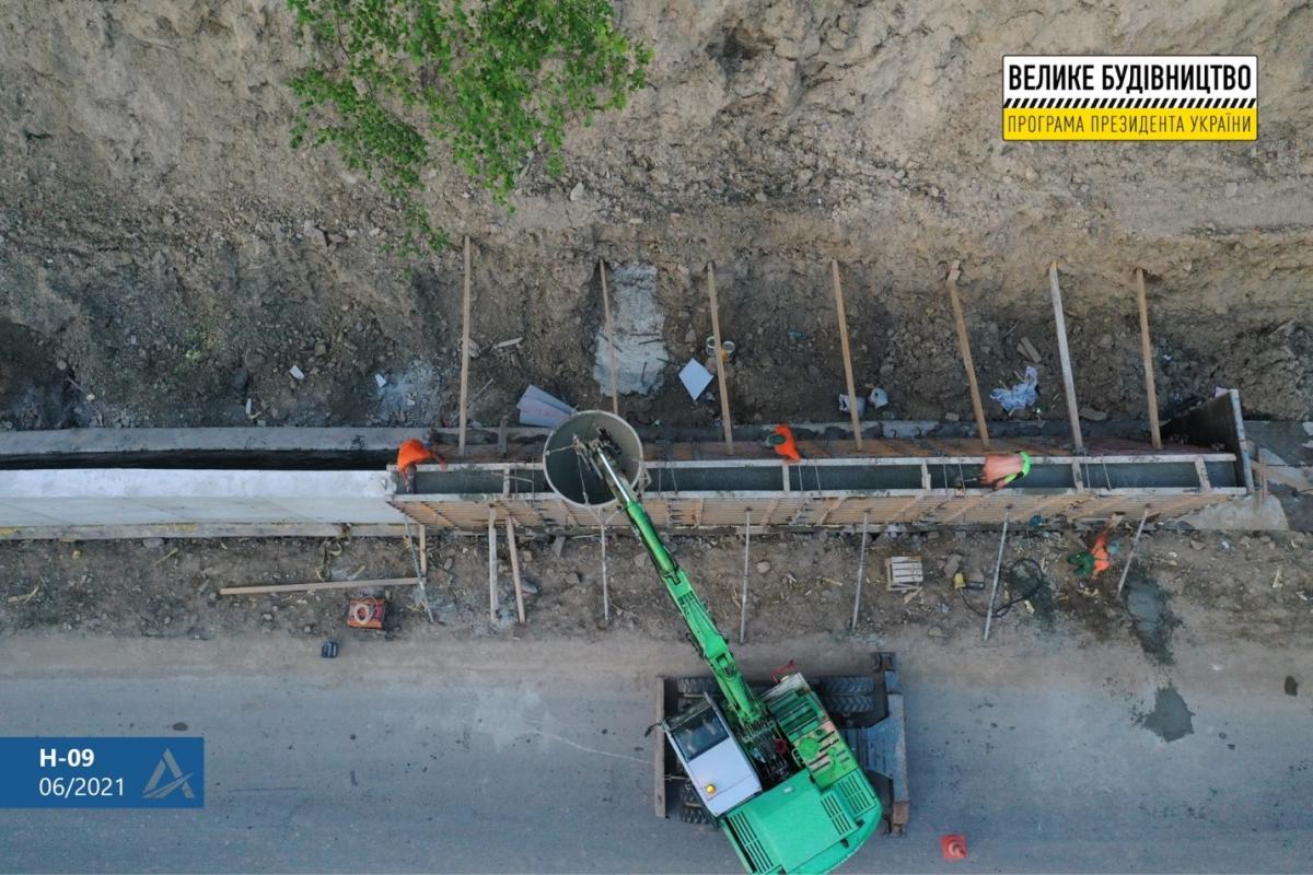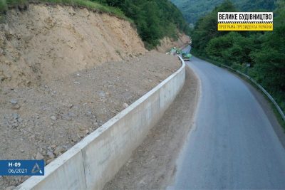 Всего вдоль маршрута Н-09 уже устроено более двух километров подпорных стенок, среди них - самая длинная низовая стенка в Украине длиной 1,6 км и высотой 4-5 м.