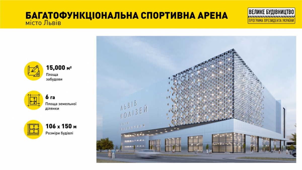 До конца 2024 года в Украине планируется построить спортивные арены в Киеве на 15 880 зрителей и во Львове на 10 тысяч зрительских мест. Киевский спорткомплекс разместится на левом берегу Днепра рядом с Международным выставочным центром.