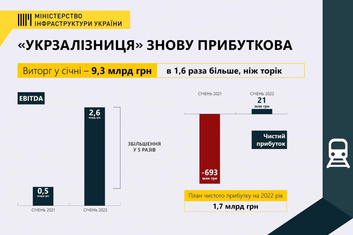 "Показатель EBITDA (объем прибыли до вычета расходов по процентам, уплаты налогов и амортизационных отчислений) в январе 2022 года по сравнению с аналогичным периодом прошлого года вырос в 5 раз – до 2,6 млрд грн", – рассказывают о финансовых результатах в ведомстве.