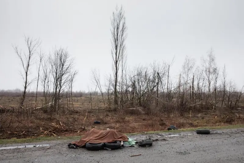В Twitter Министерства обороны Украины было опубликовано фото, на котором зафиксированы убитые мирные жители на автомобильной трассе в 20 километрах от Киева.