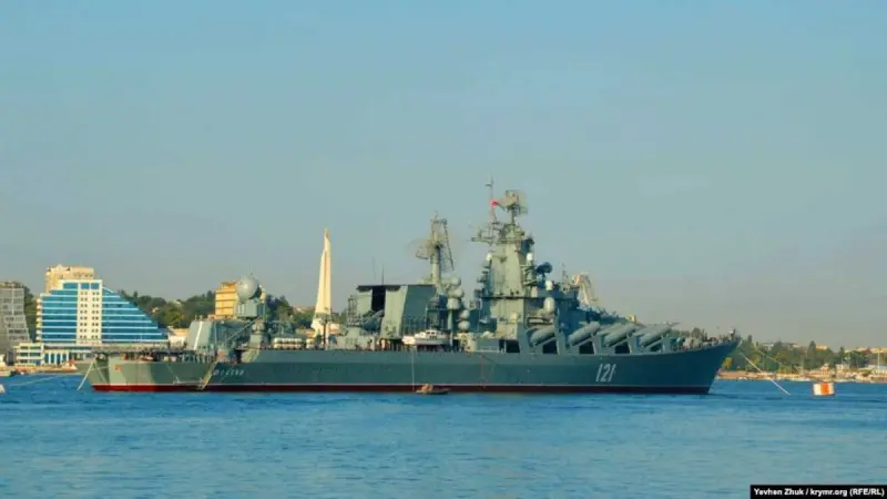 Справка. Крейсер Москва — одна из самых больших единиц флота РФ, корабль первого класса, "убийца авианосцев". Был построен в Николаеве во второй половине 1970-х годов. После ввода корабля в эксплуатацию в 1982 году он носил название Слава.