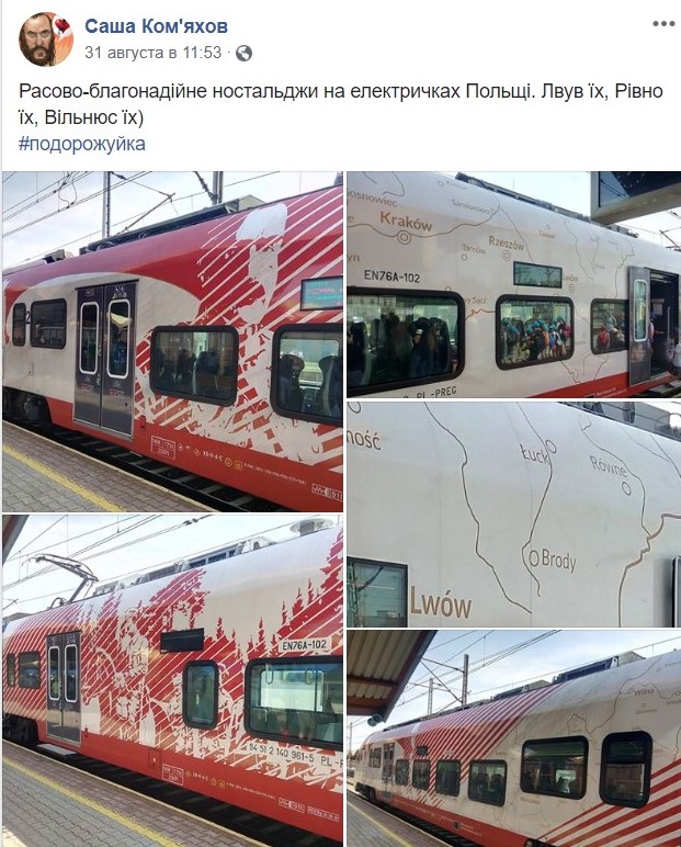 "Расово-благонадежное ностальжи на электричках Польши. Львов их, Ровно их, Вильнюс их", - написал Комяхов.