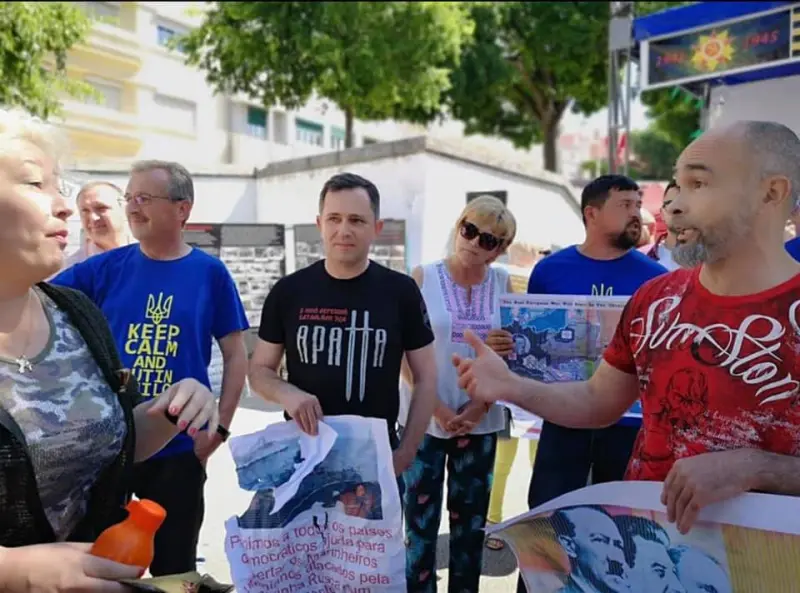 "Представители украинской общины в Португалии, узнав из социальных сетей о запланированной акции, также приняли участие в ней, но с плакатами и лозунгами, которые показывают истинную роль Сталина в развязывании Второй Мировой войны и многочисленных жертв сталинского террора и относительно нынешней московско -украинской войны", - написал Садоха в Facebook.