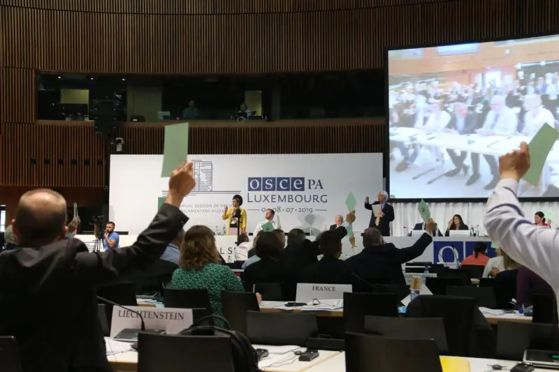 ПА ОБСЕ «вновь осуждает продолжающуюся незаконную оккупацию и попытку аннексии Крыма Российской Федерацией и настоятельно призывает Российскую 40 Федерацию отменить их, вывести российские оккупационные силы из Крыма и вернуть его под контроль правительства Украины», - сказано в документе.