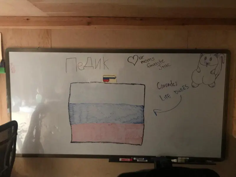 Читайте также"Теорема Х*я или закон Х*я": гражданин с яркой фамилией Х*й защитил диссертацию в Одессе - фотофактНа военной базе в сирийском Манбидже американцы оставили надписи: «п*дик» (считается ругательным в США, где крайне развито ЛГБТ-движение) и comrades like dudes («товарищам нравятся чуваки»). Они также нарисовали несколько мужских половых органов – один в цветах российского флага.