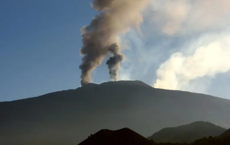 Извержение Этны сопровождается небольшими взрывами и мощным выбросом вулканического пепла. Столбы серого дыма заметны на десятки километров.