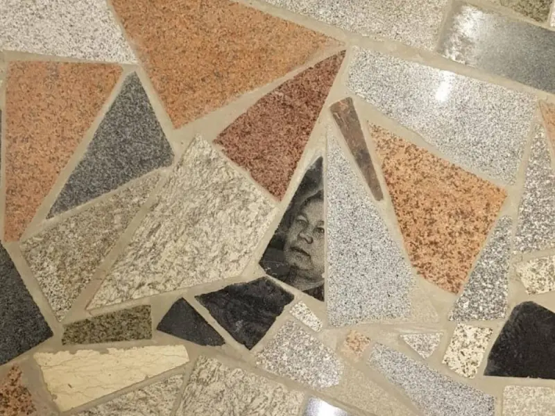 Позже выяснилось, что осколки для создания мозаичного пола являются отходами гранитного производства.
