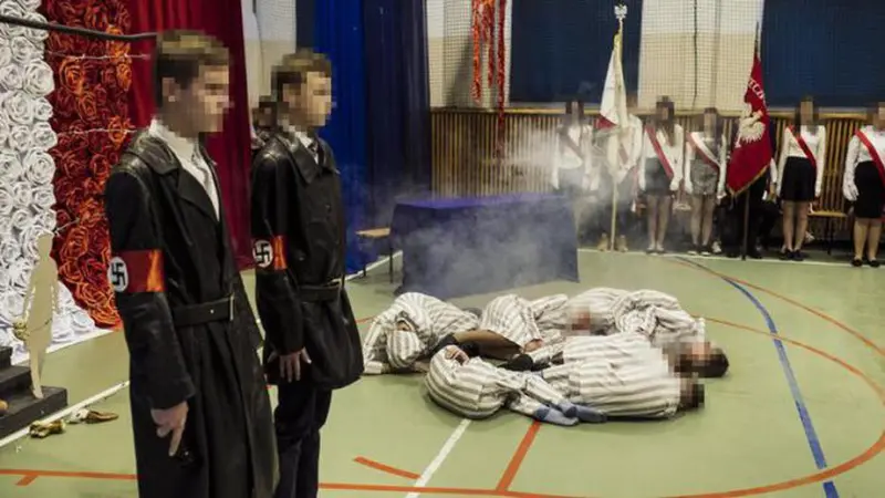 В Польше ученики одной из школ в глубинке организовали номер с танцами, основанный на историях о пытках и убийствах заключенных в печально знаменитом концлагере Освенцим в период Второй мировой войны.