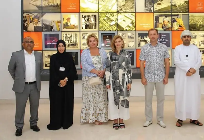 На фото, опубликованных пресс-службой Национального музея Омана Зеленская находится в окружении нескольких сотрудников музея, а также осматривает экспонаты.