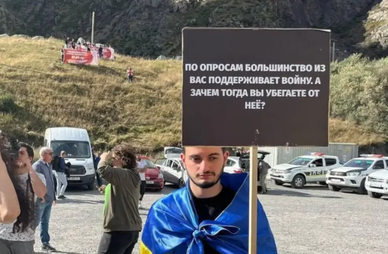 "Большинство из вас поддерживает войну. А зачем тогда вы убегаете от нее? Диктаторы делают то, что хочет большинство народа. А промытые мозги – результат бездействия самих же россиян", – говорится на плакатах митингующих.