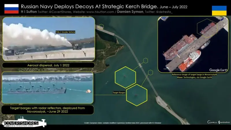 Страна-агрессор использует необычные «ловушки» для защиты Крымского моста, сообщает OSINT-исследователи из сайта «Cover shores».
