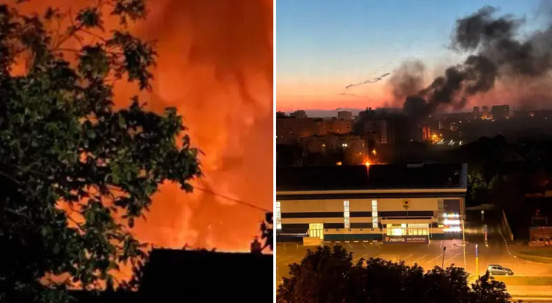 Смотрите видео - Взрывы и пожары в Белгороде ночью 9 мая: