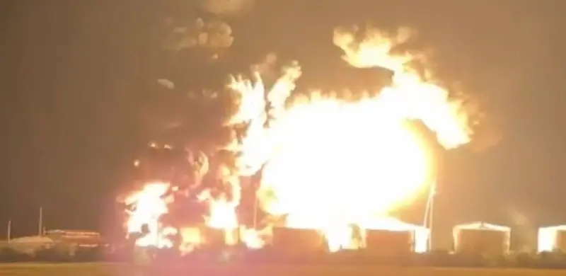 На второй день ликвидации пожара огонь охватил более 5 резервуаров с топливом, гремели новые взрывы.