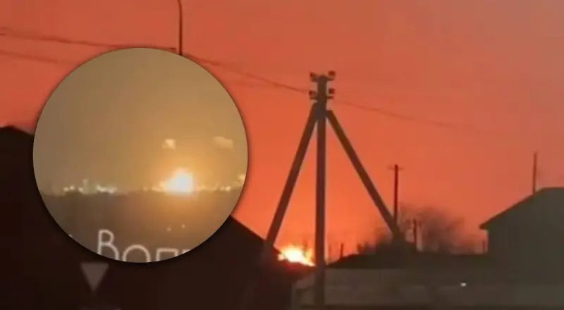 В ночь на 8 января серия взрывов прогремела над Энгельсом Саратовской области РФ. В районе нефтебазы возник пожар. Местные власти заявили о массированной атаке дронов.