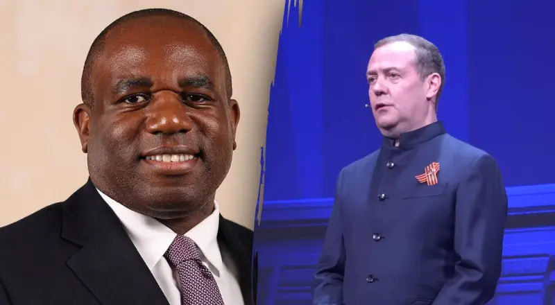 Медведев оскорбил министра иностранных дел Великобритании Дэвида Лемми, который сообщил о том, что Великобритания предоставила Украине военную помощь на $1,3 млрд из замороженных российских активов. Скандальный российский политик назвал Лемми "английским придурком" в посте в Telegram.