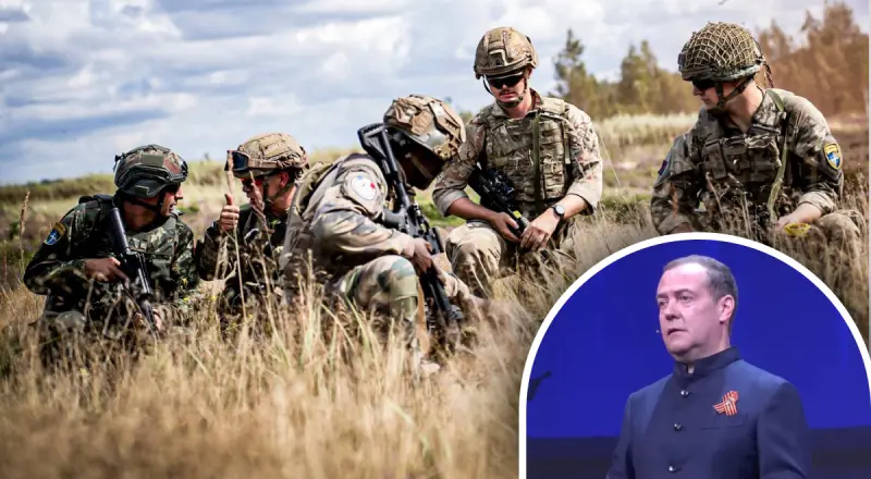 "Было четко заявлено: никаких войск НАТО в качестве миротворцев... Но хриплая, жалкая птица продолжает кукарекать, чтобы доказать, что она король курятника", - написал Медведев.