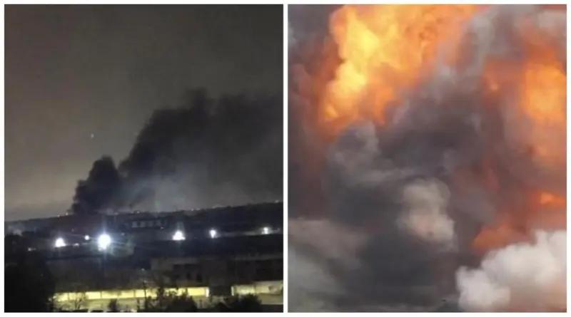 При этом в Сети уже появились фото на которых видно, что на территории предприятия поднимаются густые клубы черного дыма. Это может свидетельствовать о вспыхнувшем в результате удара пожаре.