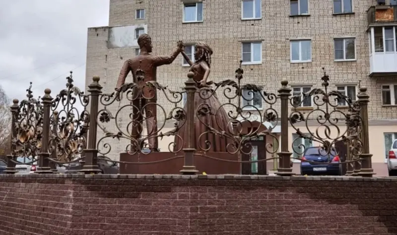 В российском городе Павлово Нижегородской области около здания местного ЗАГСа появился памятник молодоженам.