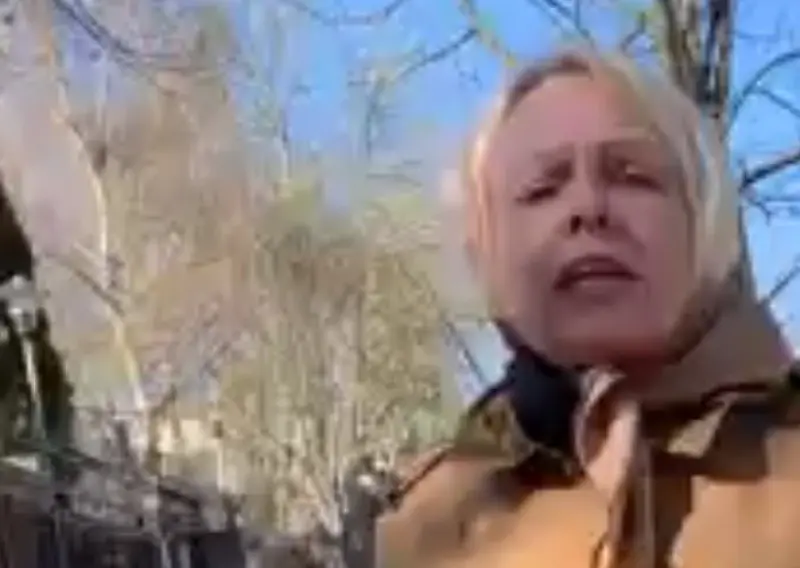 Неадекватная ра**истка срывала украинские флаги с российского посольства. При этом она посылала проклятья в адрес украинцев, пишет Север.Реалии.