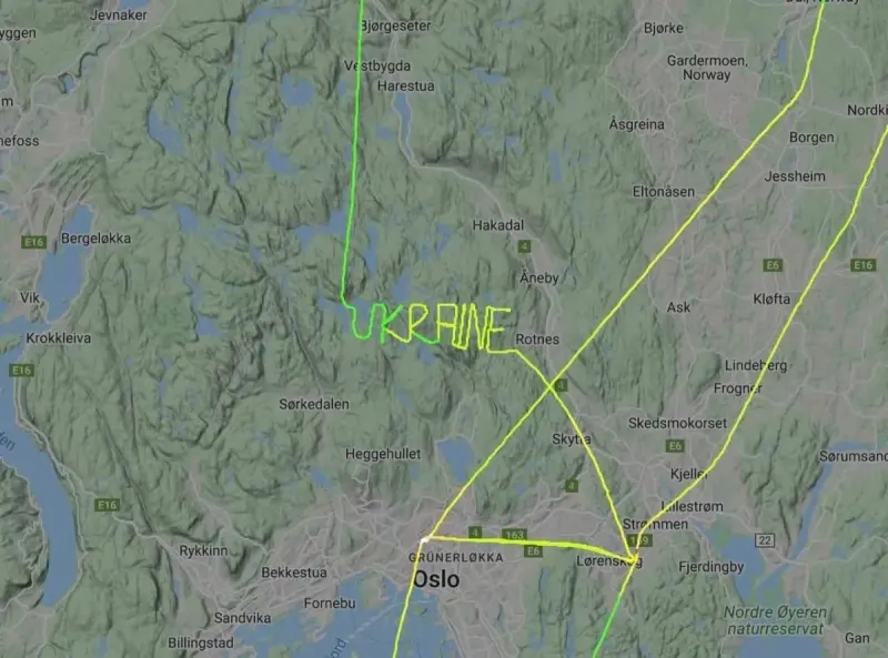 Утром, 3 марта в небе над Норвегией появилась надпись "Украина". Ее "создал" летчик местной авиакомпании Airbus Helicopters.