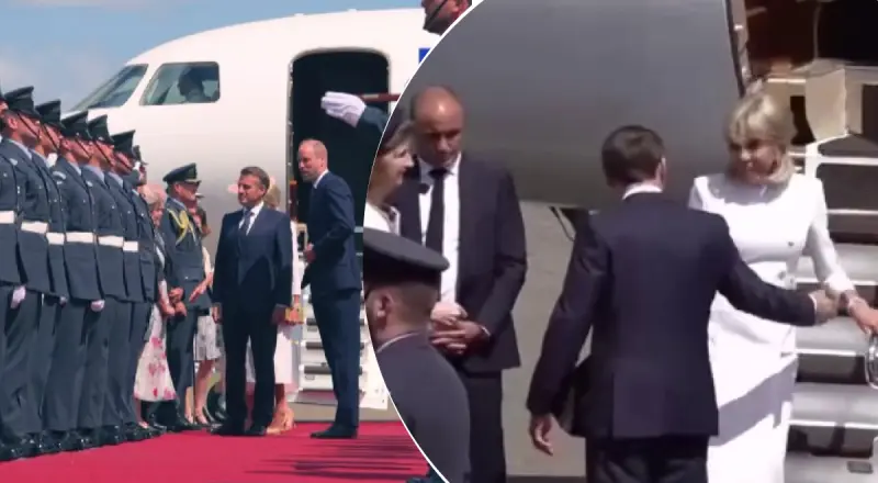 Макрон первый выходил из самолета, а его жена не очень спешила идти за ним. Когда французский президент спустился, он развернулся и подал руку Бриджит. Однако она сделала вид, будто не видит этого и проигнорировала жест мужа.