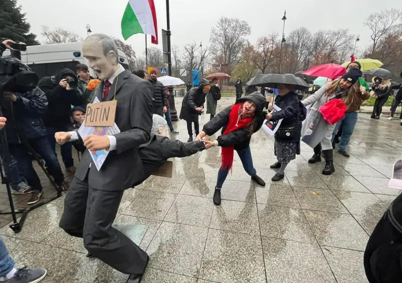 В Варшаве прошел яркий политический перформанс, в котором высмеивалась трусливая пророссийская позиция премьера Венгрии Виктора Орбана.