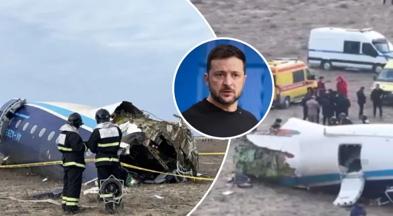 К падению азербайджанского пассажирского самолета Embraer 190 вблизи города Актау в Казахстане причастна Россия. Международное сообщество должно сплотиться, чтобы установить правду и привлечь виновных к ответственности. Об этом заявил президент Украины Владимир Зеленский.