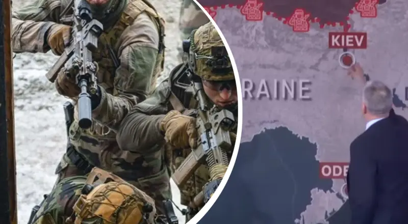 При этом он прокомментировал гипотетический сценарий размещения французского контингента в Украине. На экране были показаны вероятные места дислокации французских войск.