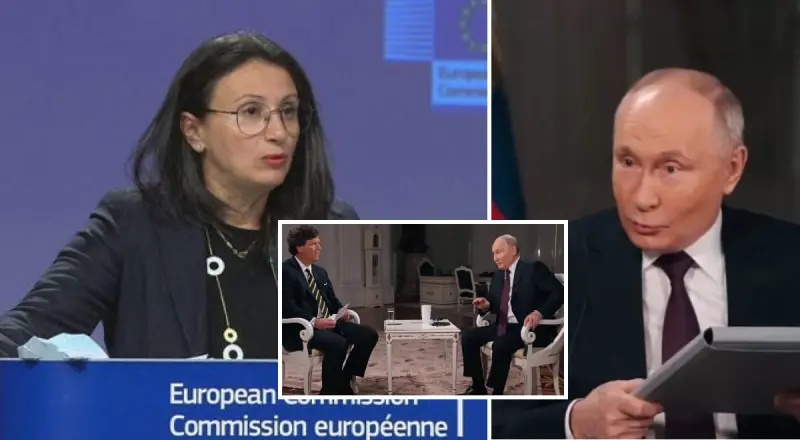 В Еврокомиссии отреагировали на двухчасовое интервью, которое дал российский диктатор Владимир Путин пророссийскому пропагандисту и экс-ведущему телеканала Fox News Такеру Карлсону. Об этом на брифинге сказала пресс-секретарь Европейской комиссии Набила Массрали, сообщает "Европейская правда".